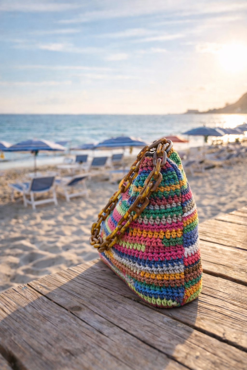 Compatta ma funzionale, è perfetta per outfit estivi, passeggiate al mare, aperitivi al tramonto o serate informali. Ogni pezzo è unico, espressione del valore del fatto a mano e della creatività artigianale.