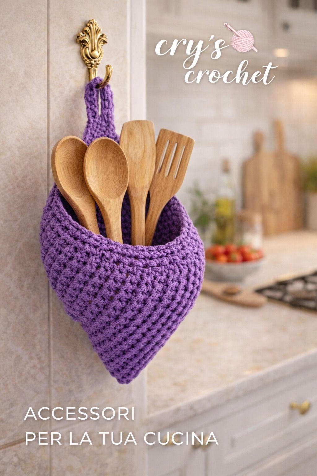 Portaoggetti in crochet artigianale, elegante e funzionale, perfetto per organizzare con stile gli spazi domestici.