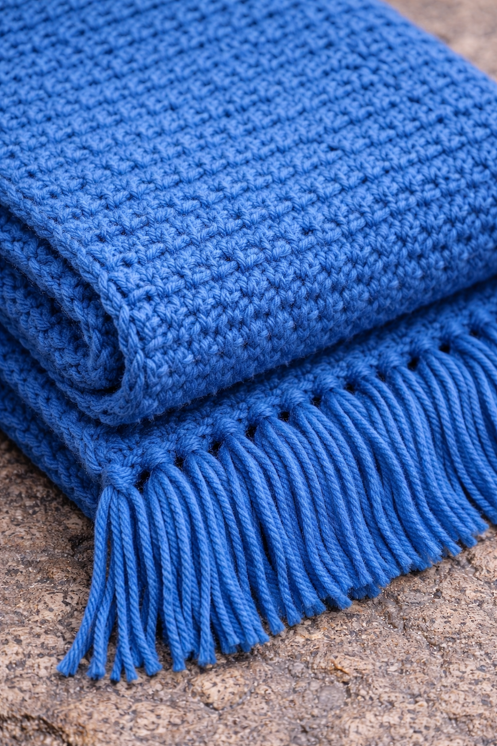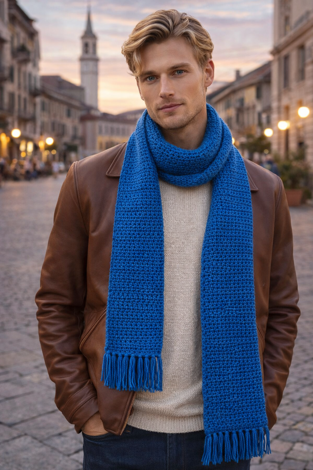 Una sciarpa all’uncinetto fatta a mano, dalla texture compatta e dal colore intenso che unisce comfort ed eleganza contemporanea.