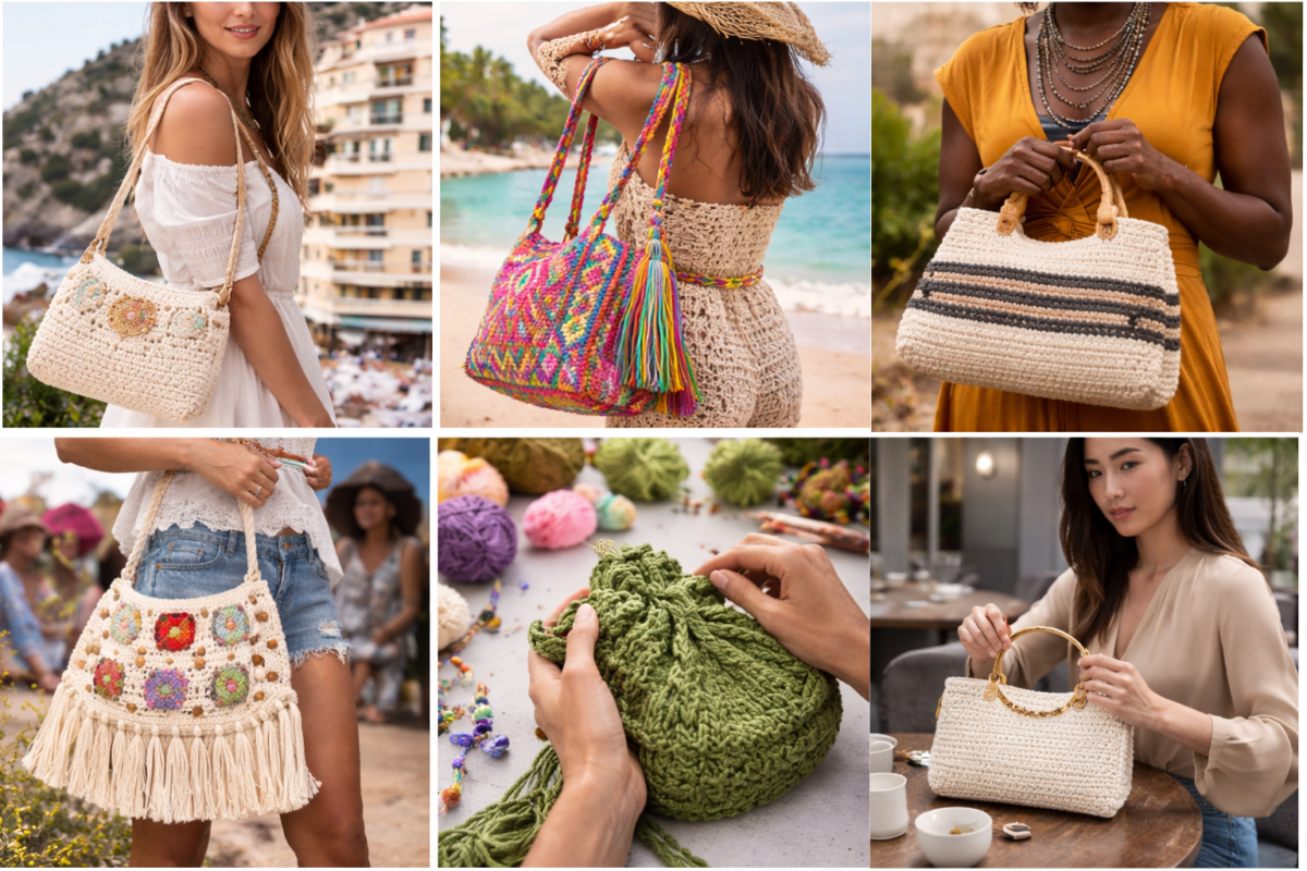 Le borse all’uncinetto si sono diffuse in tutto il mondo, evolvendosi da tecnica tradizionale a linguaggio creativo contemporaneo adottato da designer e artigiani.